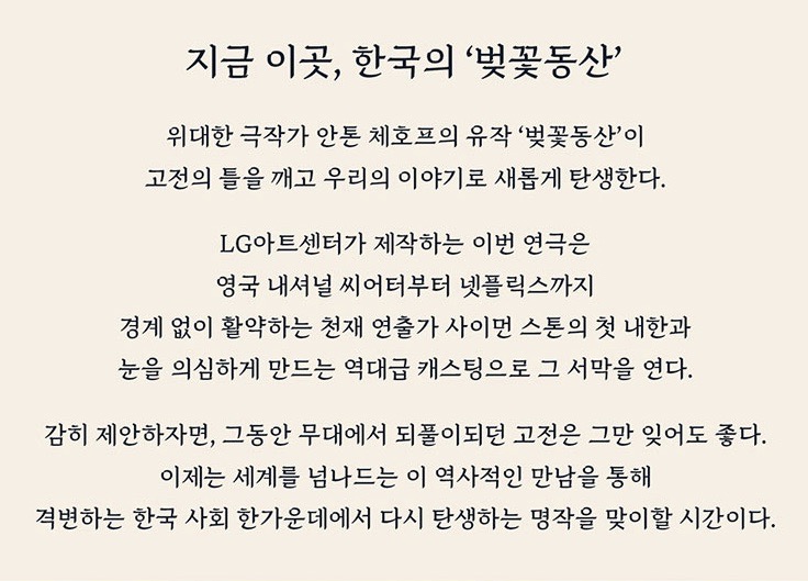 27년 만에 연극에 출연하는 전도연 배우가 선택한 작품인 '벚꽃동산' 정말 기대되네요!